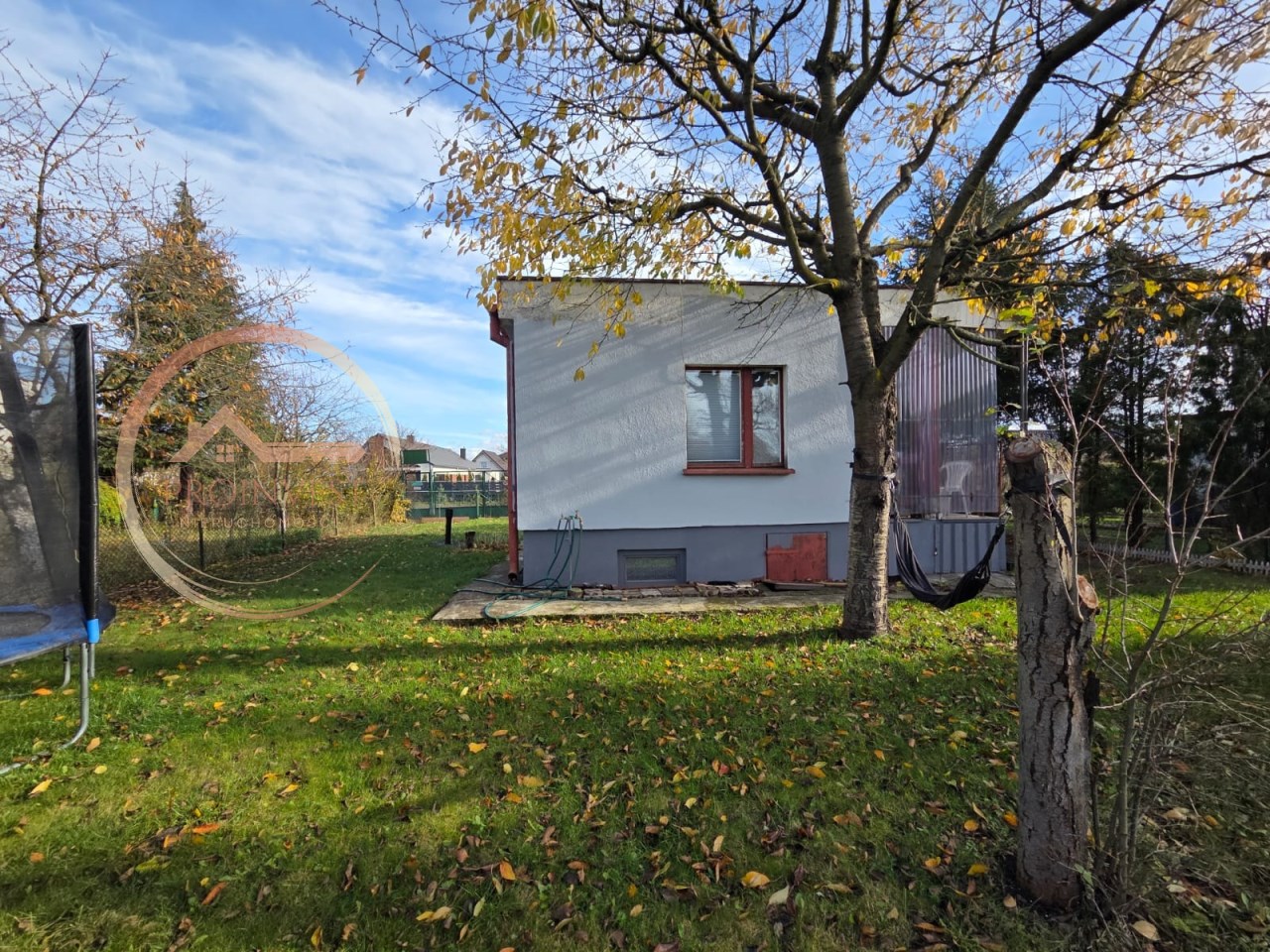 Na działce znajduje się murowany domek o powierzchni 35 m² z dużym tarasem oraz podpiwniczeniem o powierzchni 35 m².
