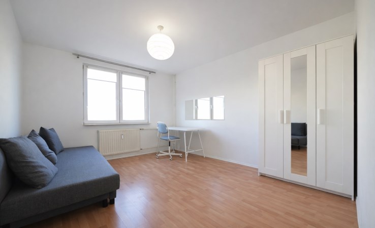 Układ pozwala na wydzielenie 2 sypialni z przeniesieniem aneksu do salonu. Mieszkańcy bez utrudnień zyskują takie pozwolenie.
