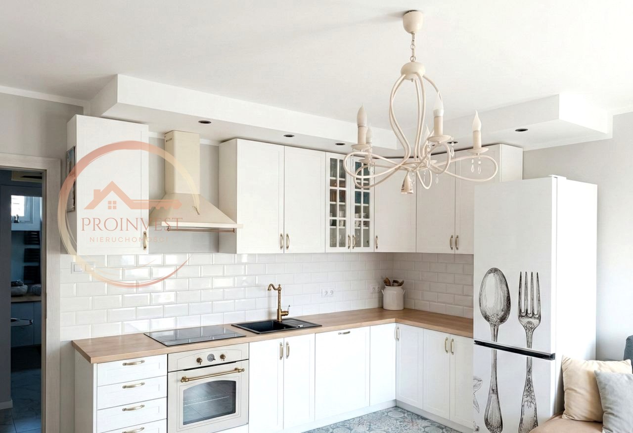 | Wyposażenie kuchni | krzesła, lodówko-zamrażarka,, okap, piekarnik, płyta indukcyjna, stół, szafki kuchenne |