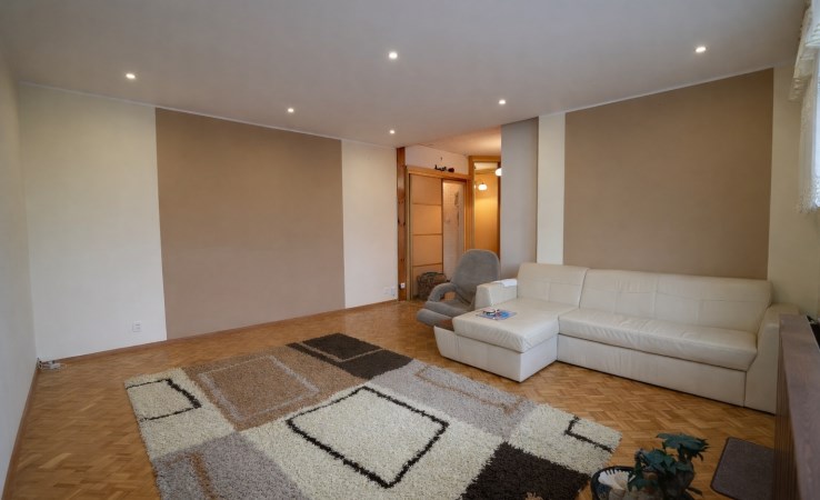 Jasna, otwarta przestrzeń dzienna stanowiąca centrum mieszkania. Z salonu wyjście na balkon.