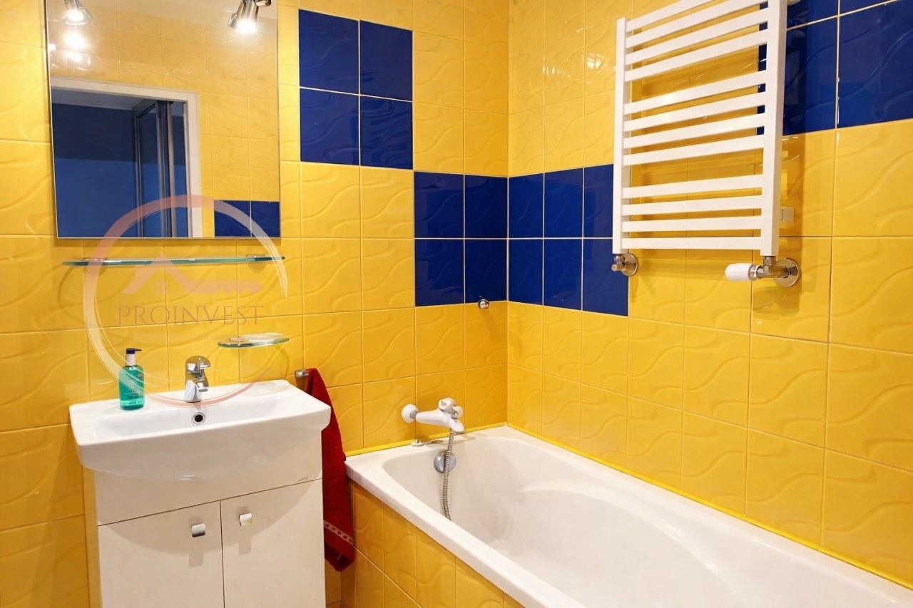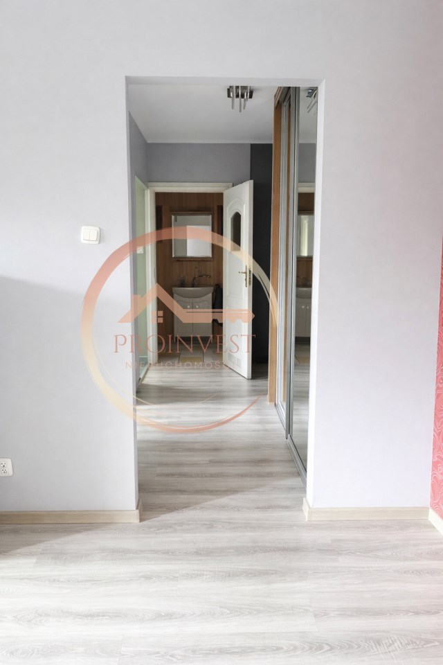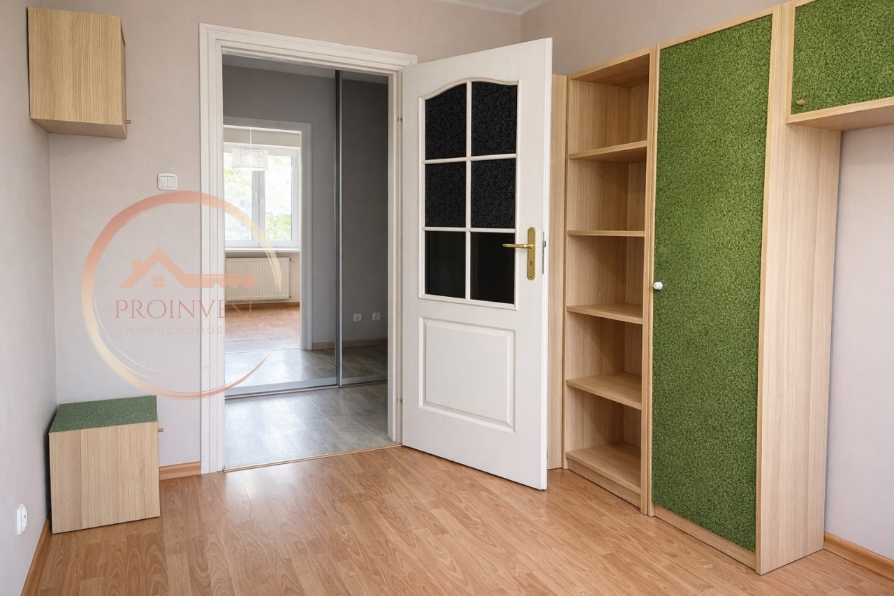 Lokal składa się z dwóch pokoi, kuchni, przedpokoju oraz łazienki z WC. Kuchnia wyposażona jest w lodówkę, płytę ceramiczną, piekarnik oraz okap. Mniejszy pokój, przedpokój (z dużą zabudową) oraz łazienka z wanną są w pełni umeblowane i wyposażone. Duży pokój pozostaje częściowo umeblowany.