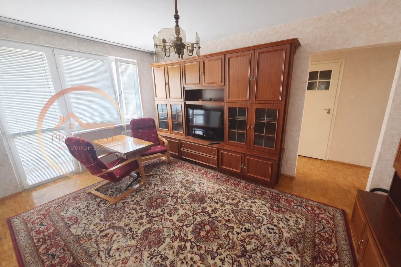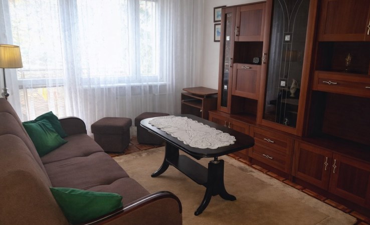 Mieszkanie składa się z dwóch pokoi z wnęką, jest czyste i ciepłe, urządzone w starszym, ale zadbanym stylu. Lokal posiada balkon i jest w pełni umeblowany.