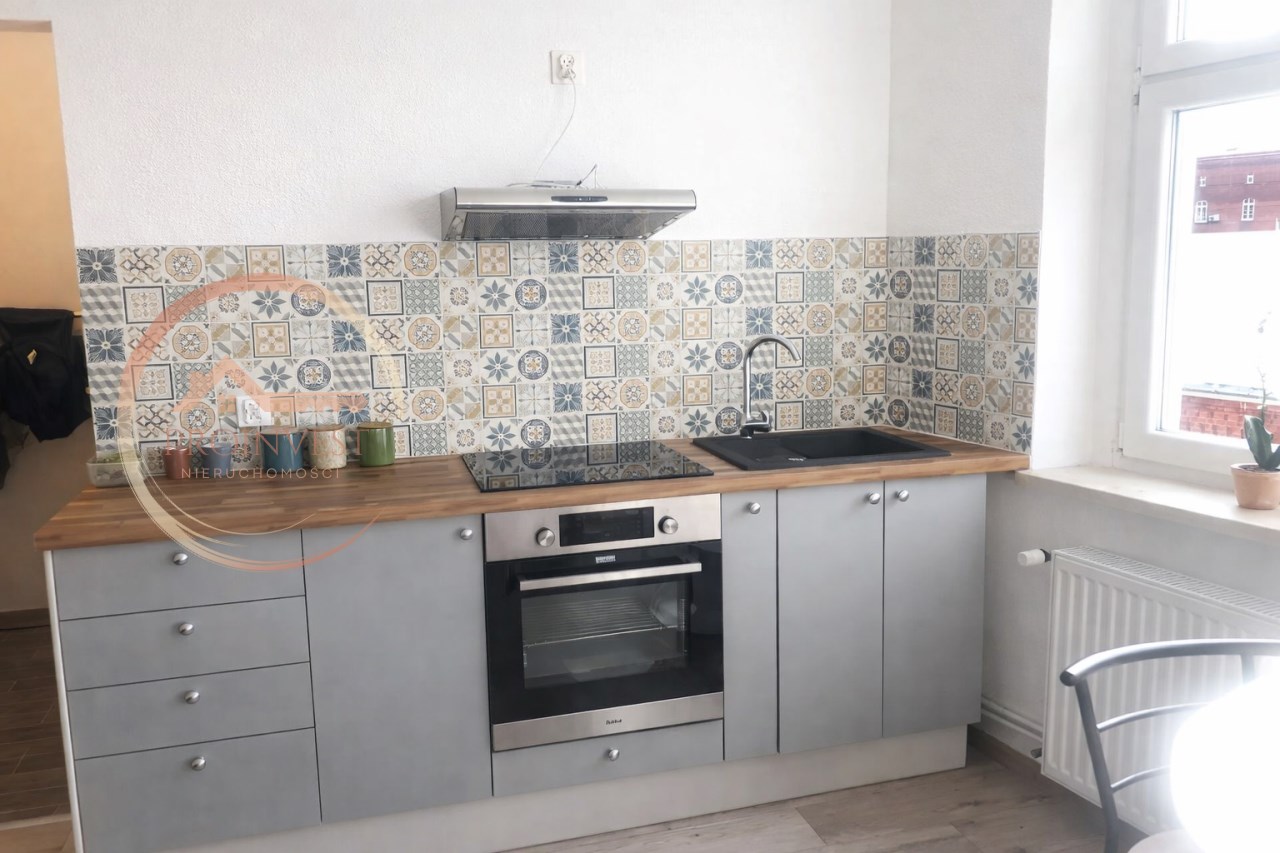 Aneks kuchenny wyposażony w meble wykonane na wymiar oraz wysokiej jakości sprzęt AGD: płyta indukcyjna, piekarnik, lodówka. W mieszkaniu nowe instalacje oraz okna PCV. Ogrzewanie gazowe – piec dwufunkcyjny. Lokal kompletnie wyposażony, gotowy do zamieszkania od zaraz.